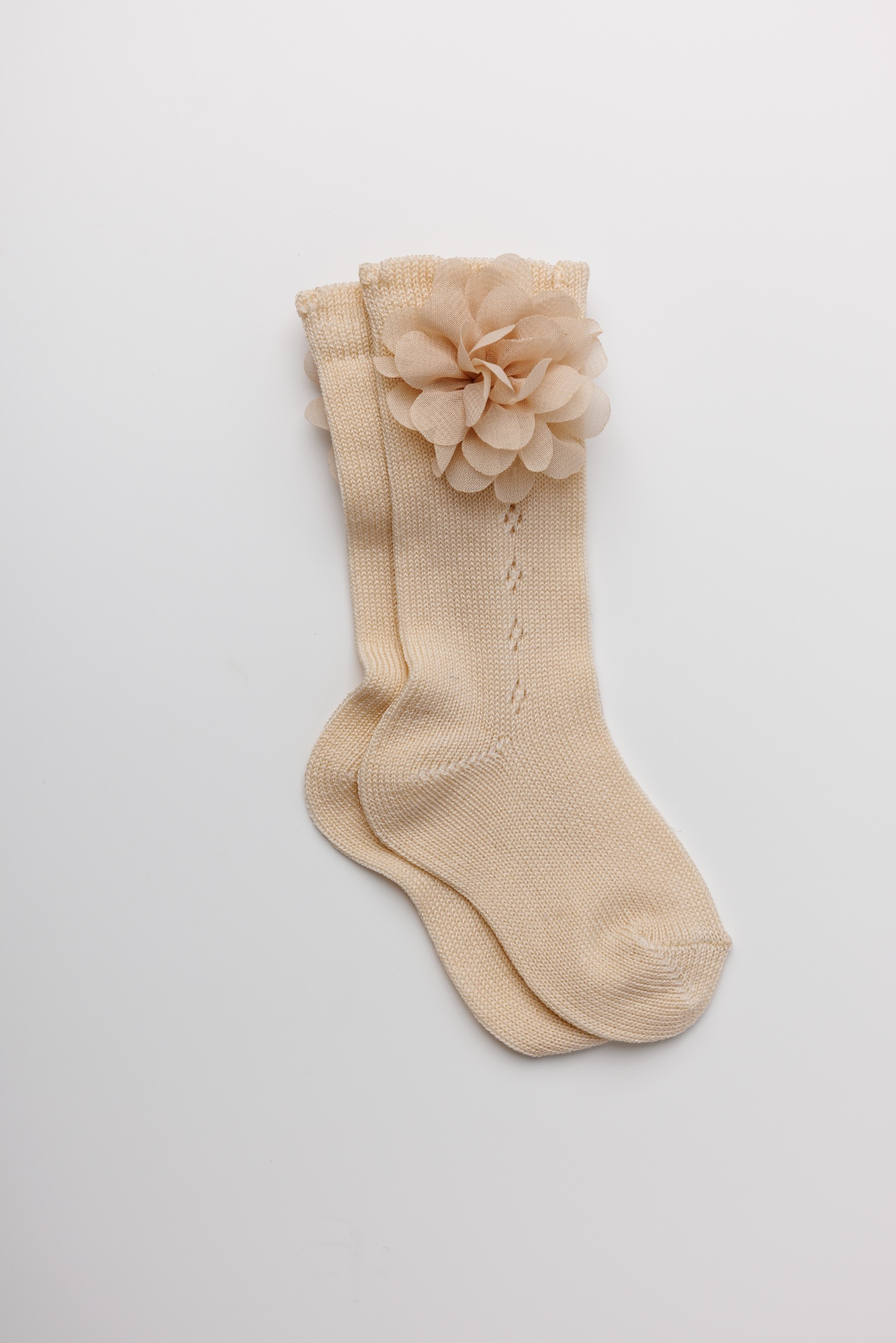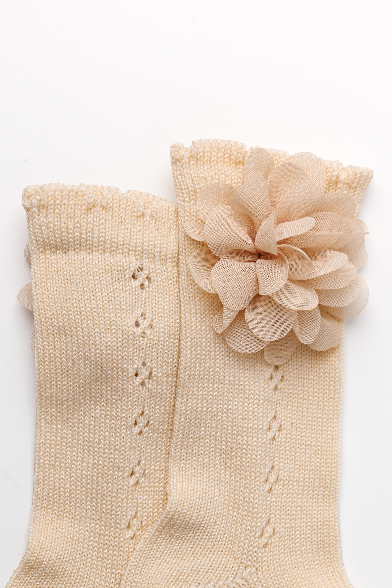 Meia Bloom Pointelle Bege