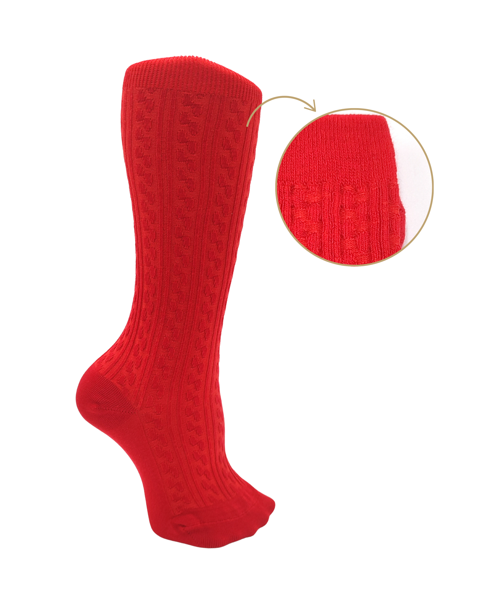 Meia até ao joelho desenvolvida em malha jacquard, com textura subtil e acabamento visualmente rico.