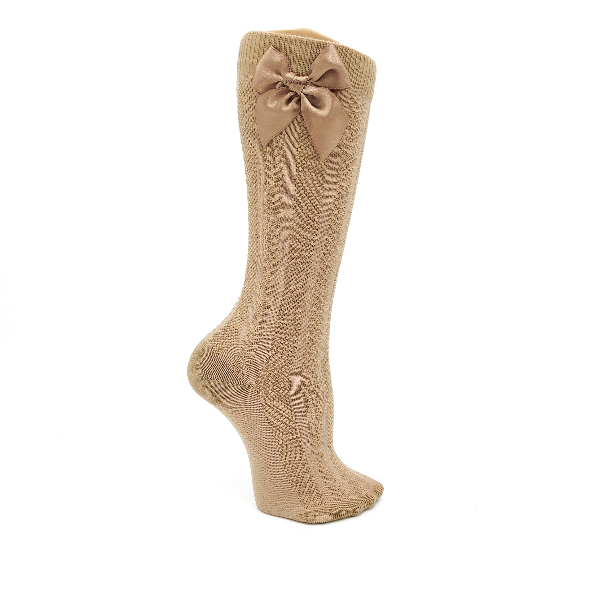 • Meia joelho espinha com laço cetim bege