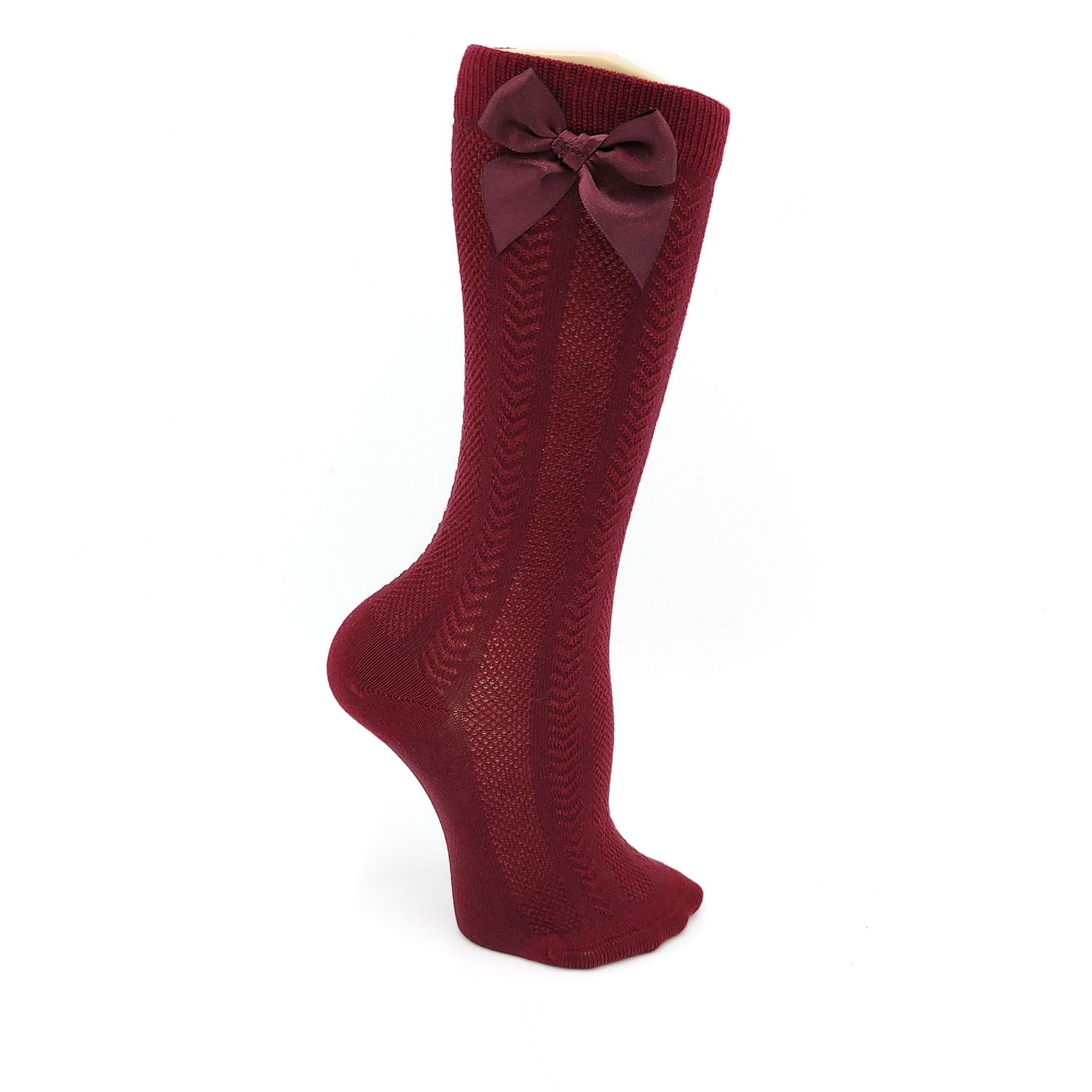 Meias pelo joelho com padrão Espinha-de-Peixe com laço de cetim.