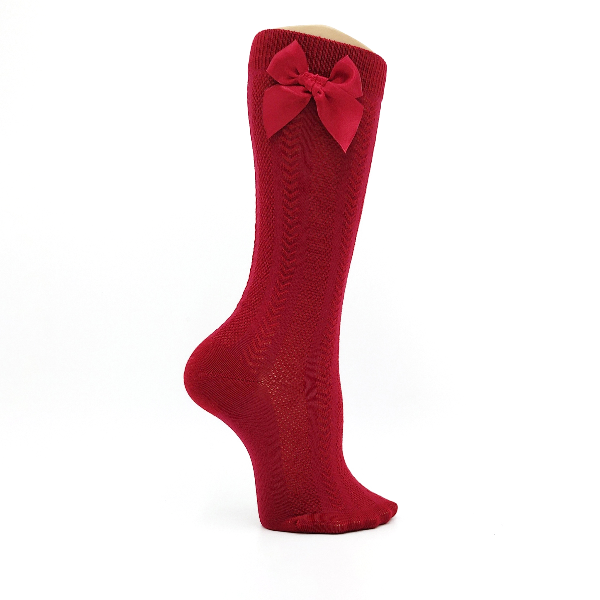 Meias pelo joelho com padrão Espinha-de-Peixe com laço de cetim.