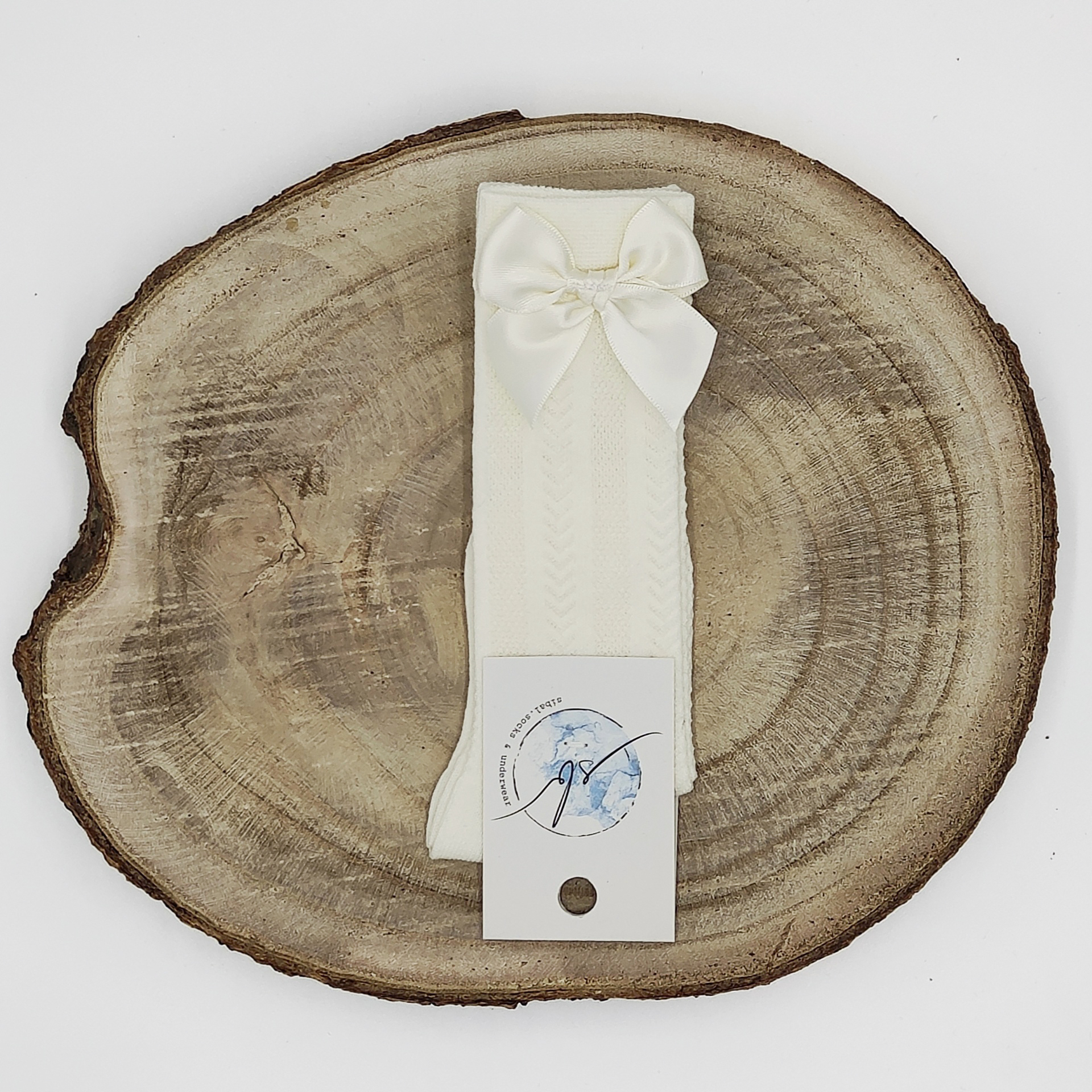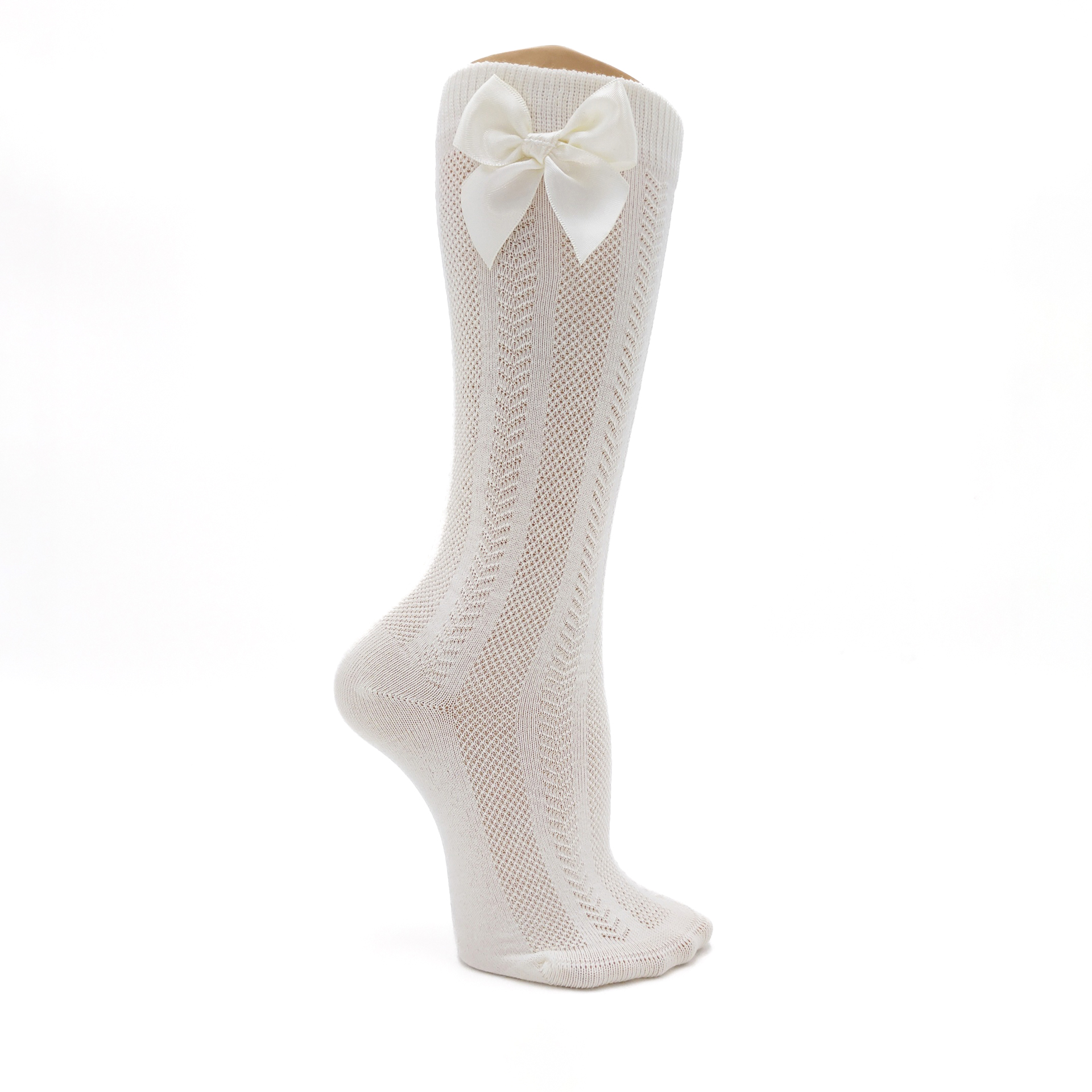 • Meia joelho espinha com laço cetim pérola