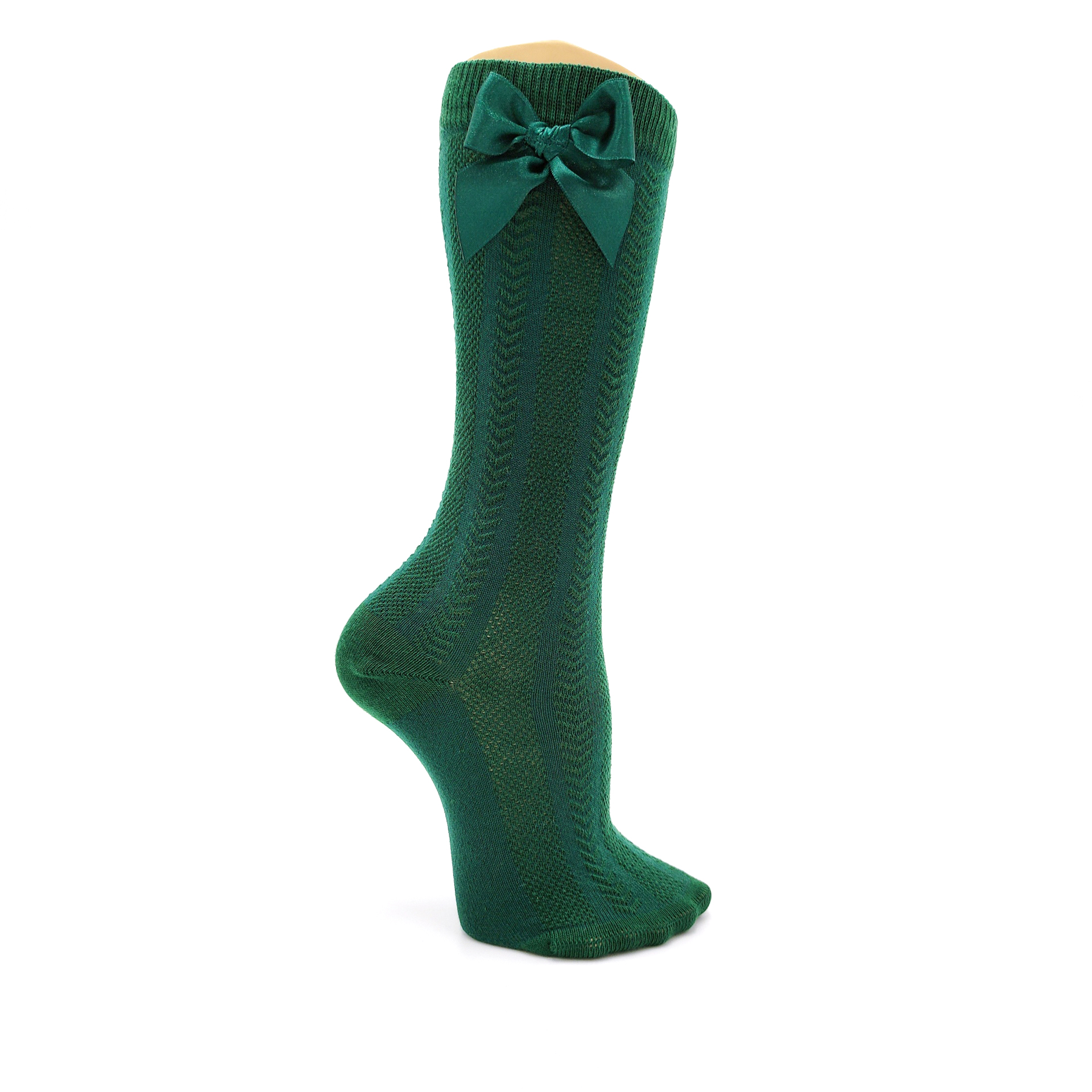 Meias pelo joelho padrão Espinha-de-Peixe com laço de cetim.