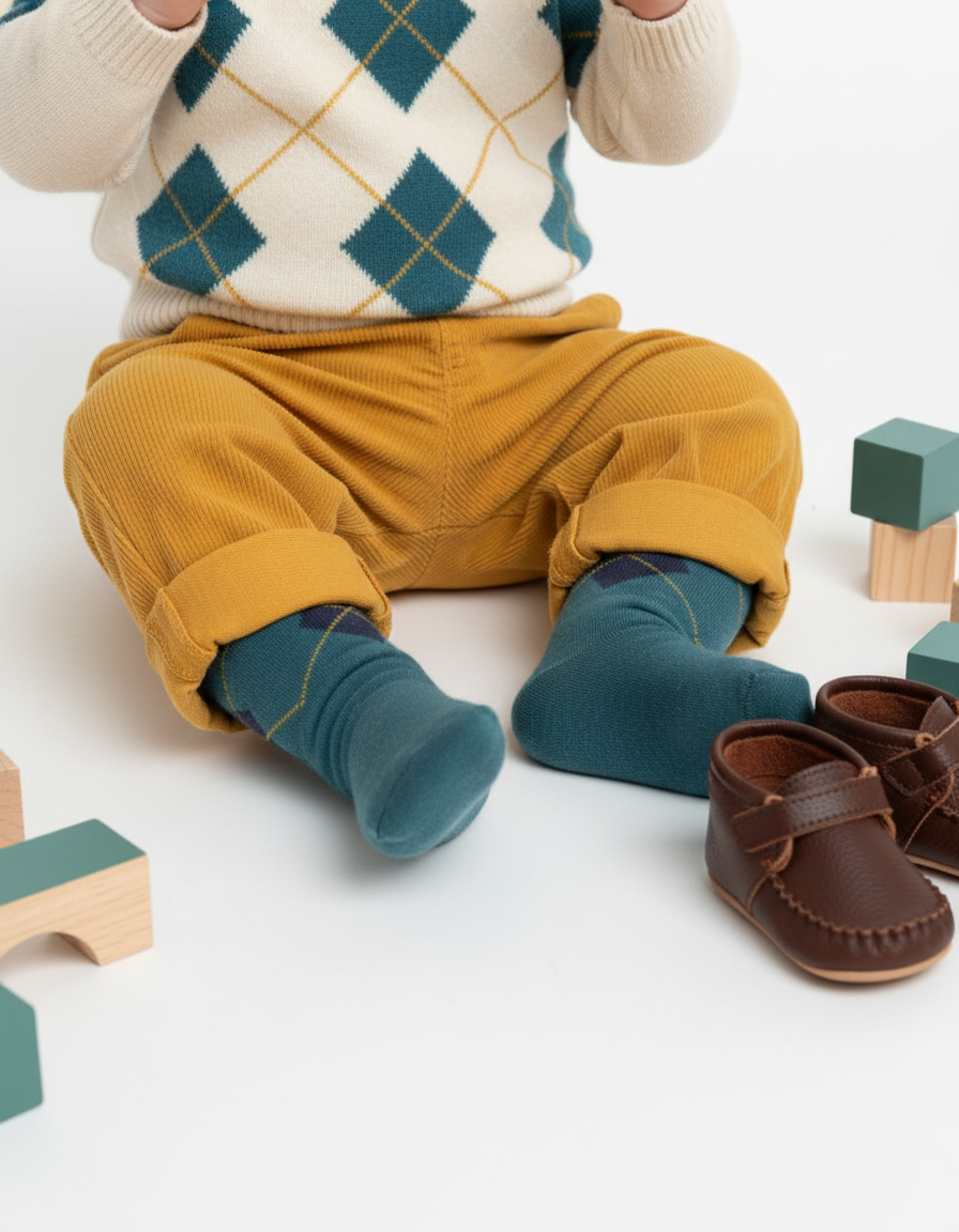 Meias Losango Bebé. Disponível nos tamanhos 0 a 3 anos. Unissexo.